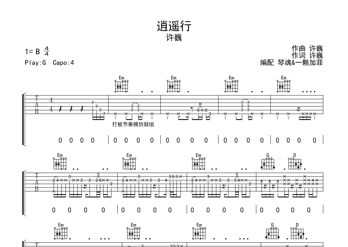 许巍《逍遥行》吉他谱 - G调弹唱六线谱