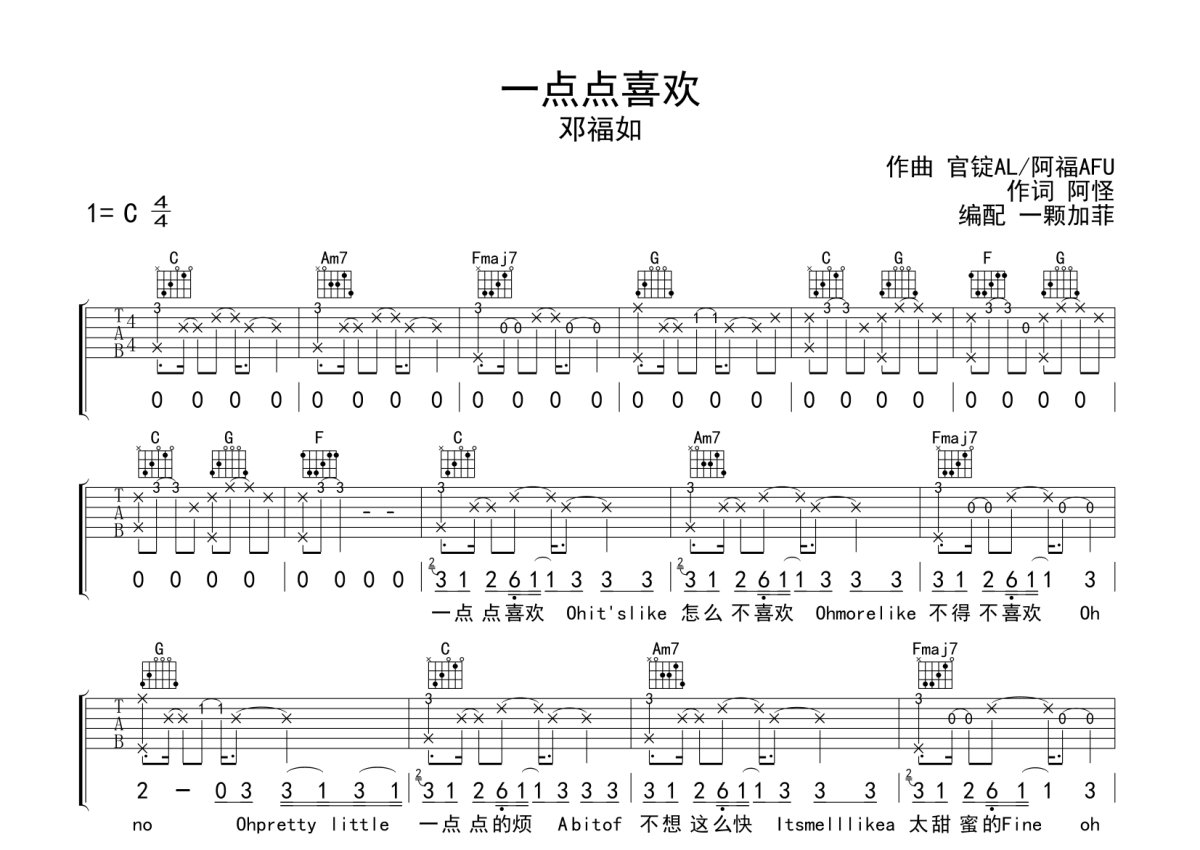 邓福如《一点点喜欢》吉他谱 - C调弹唱六线谱