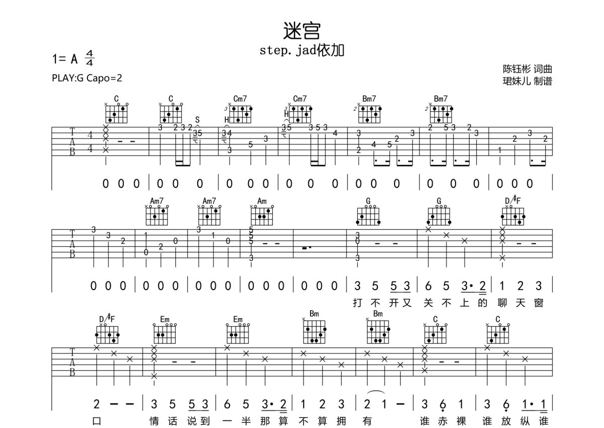 step.jad依加《迷宫》吉他谱 - G调弹唱六线谱