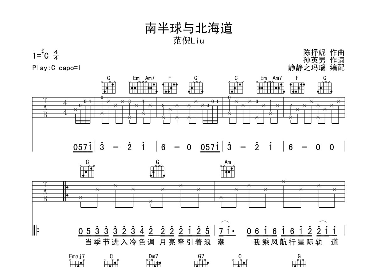 范倪Liu《南半球与北海道》吉他谱 - C调弹唱六线谱