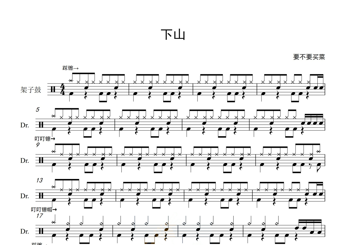 要不要买菜《下山》鼓谱 - 架子鼓谱