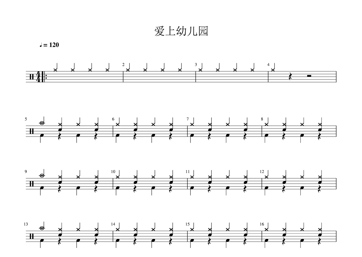 张庭《爱上幼儿园》鼓谱 - 架子鼓谱 - 简单幼儿版