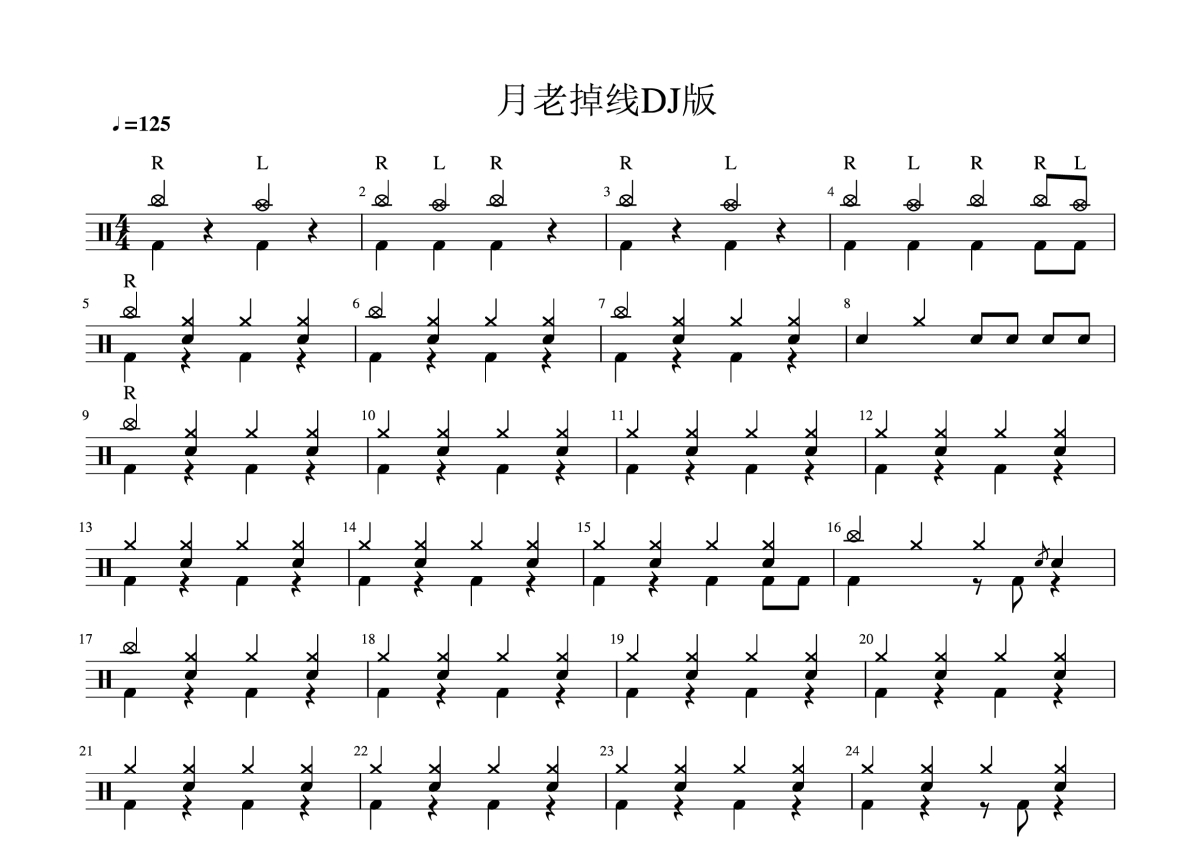 王不醒《月老掉线DJ版》鼓谱 - 架子鼓谱 - 简单儿童版