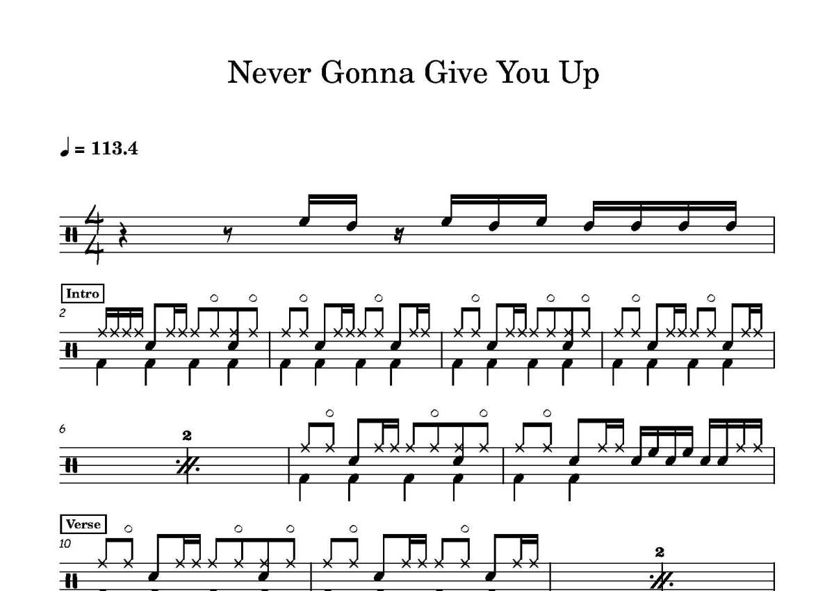 Rick Astley《Never Gonna Give You Up》鼓谱 - 架子鼓谱