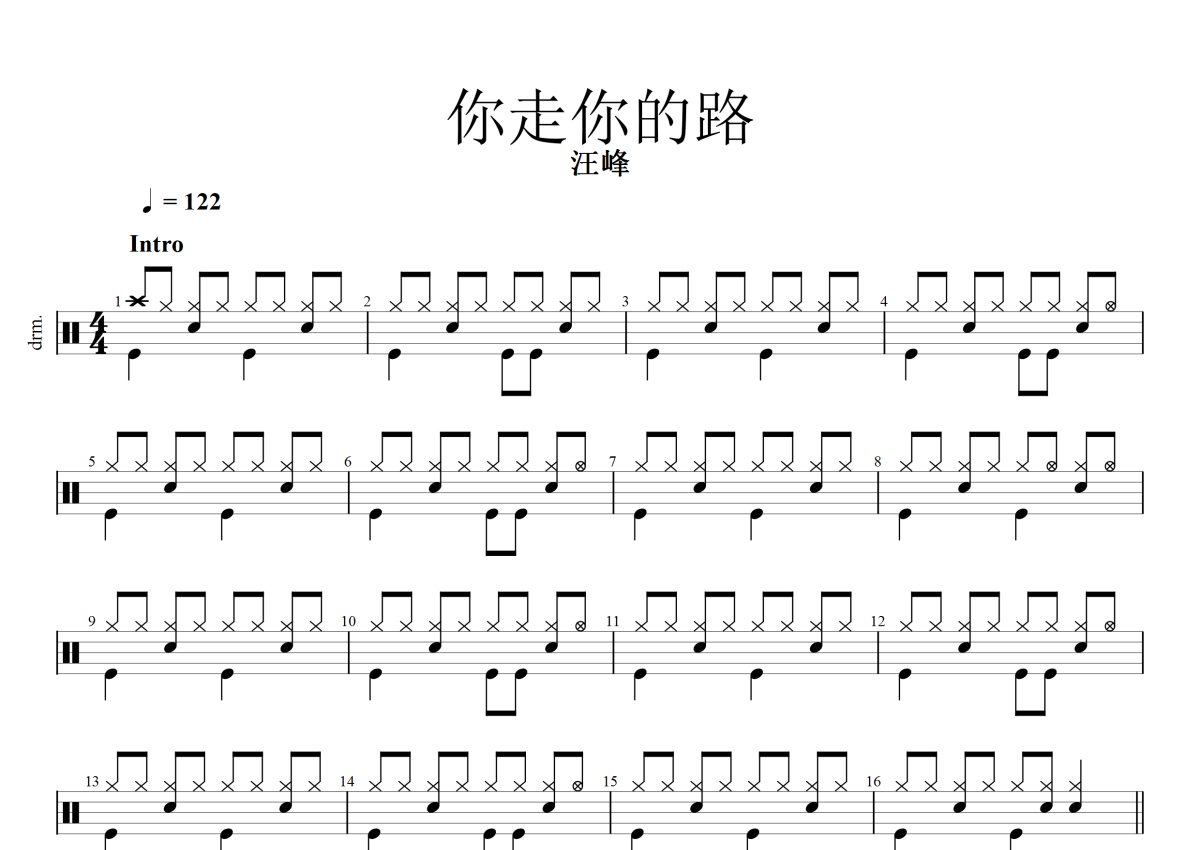 汪峰《你走你的路》鼓谱 - 架子鼓谱