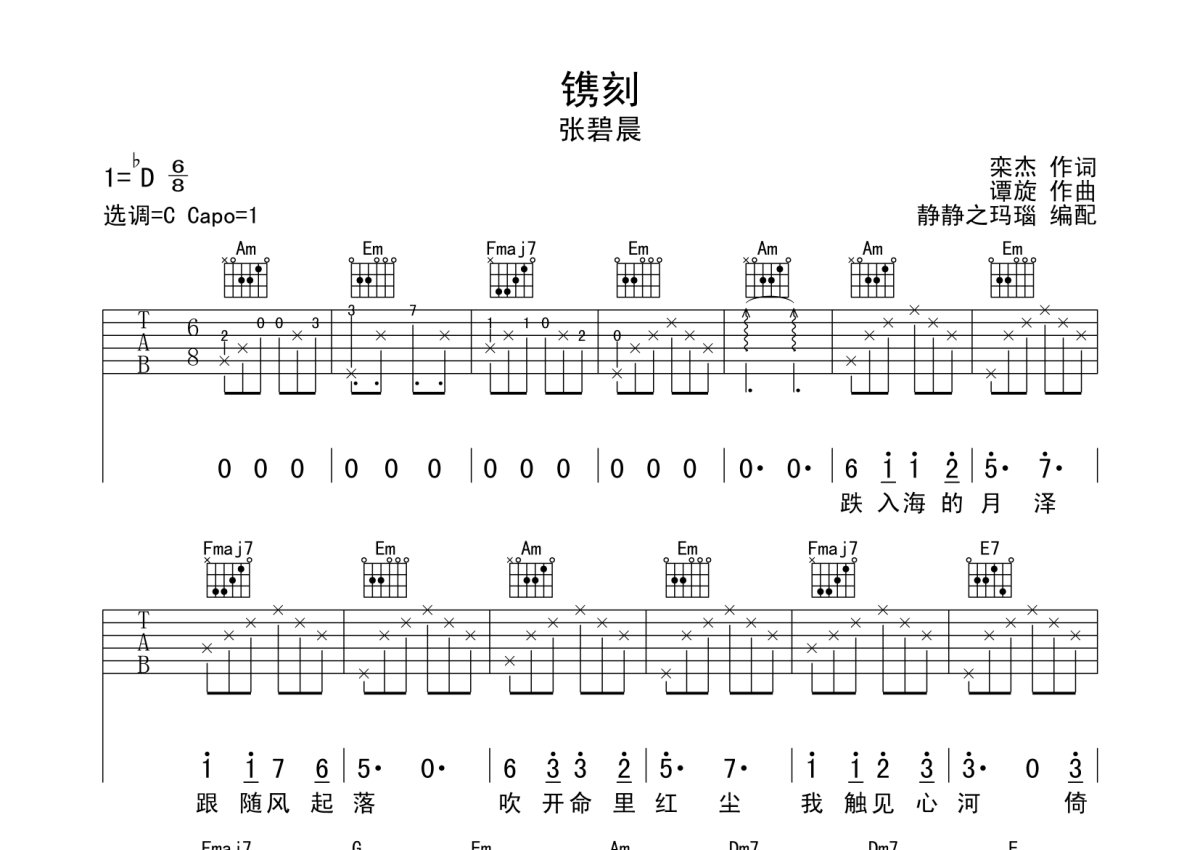 张碧晨《镌刻》吉他谱 - C调弹唱六线谱