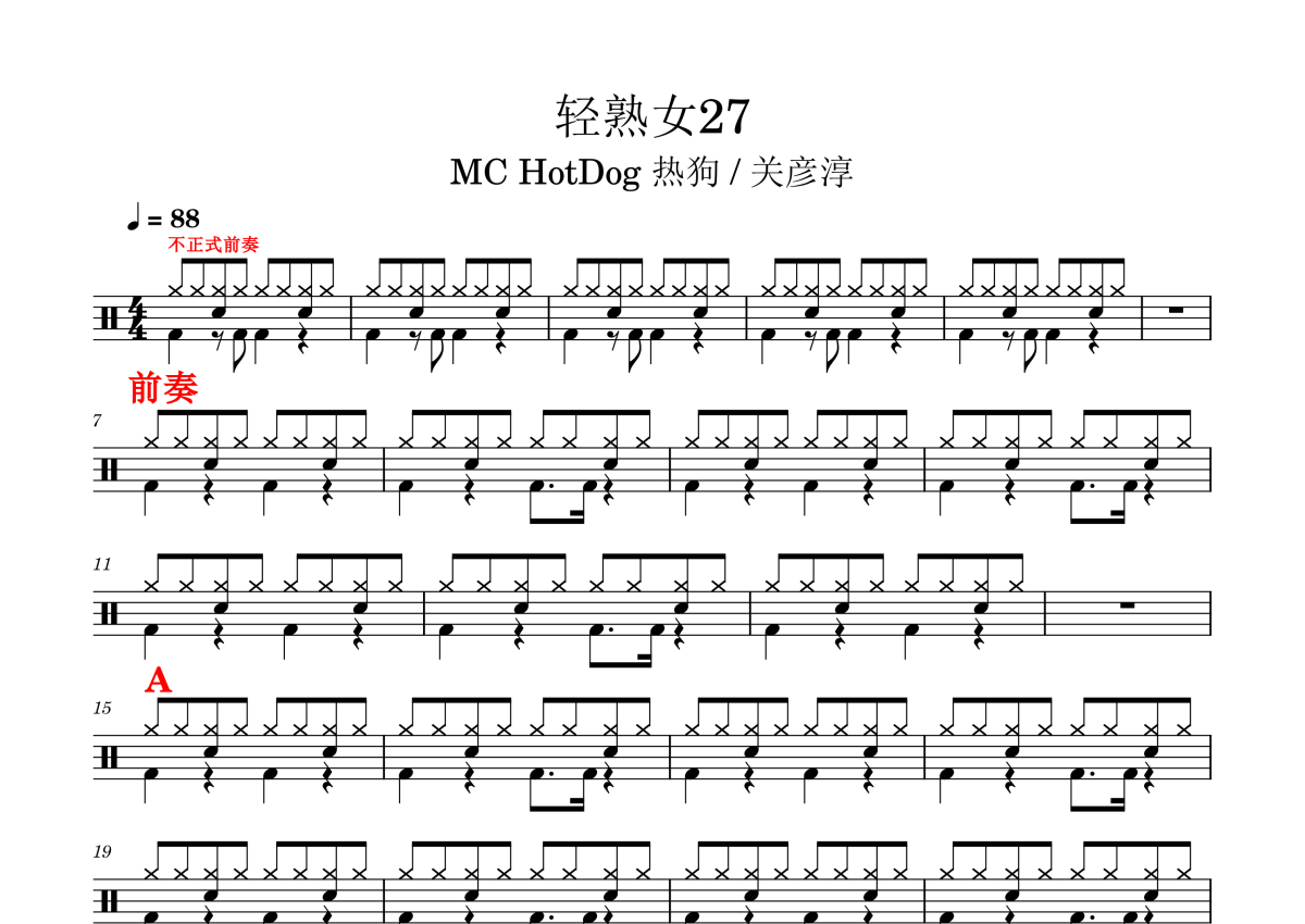 热狗/关彦淳《轻熟女27》鼓谱 - 架子鼓谱