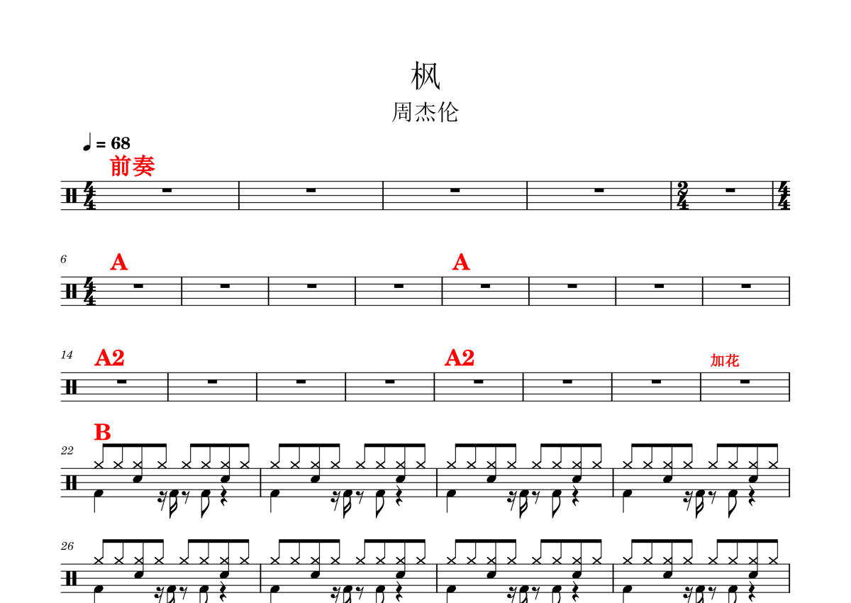 周杰伦《枫》鼓谱 - 架子鼓谱