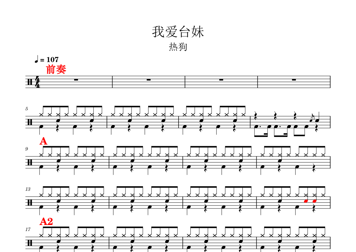 热狗/张震岳《我爱台妹》鼓谱 - 架子鼓谱