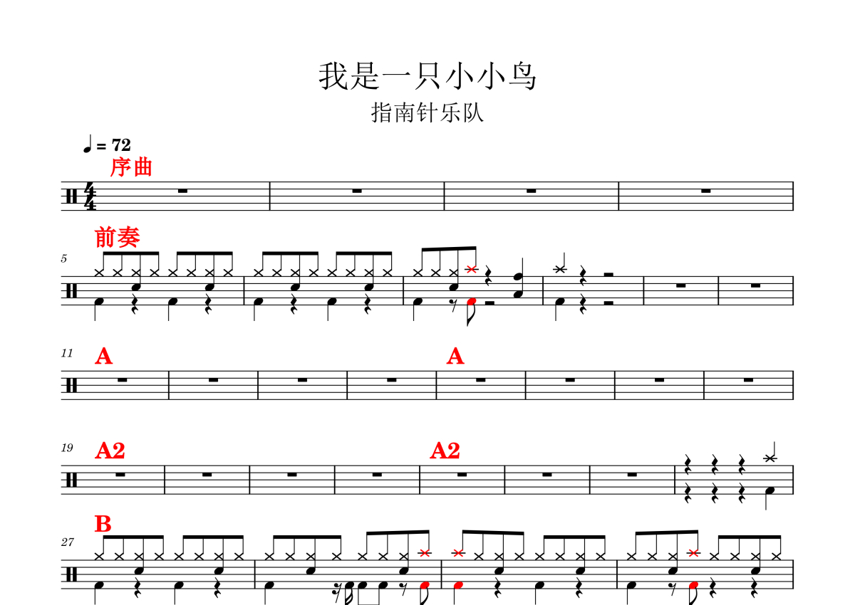 指南针乐队《我是一只小小鸟》鼓谱 - 架子鼓谱