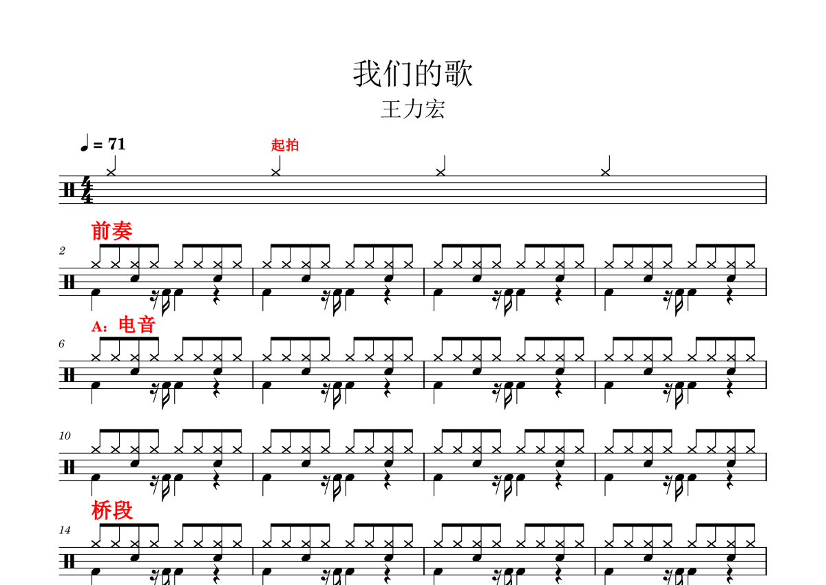 王力宏《我们的歌》鼓谱 - 架子鼓谱