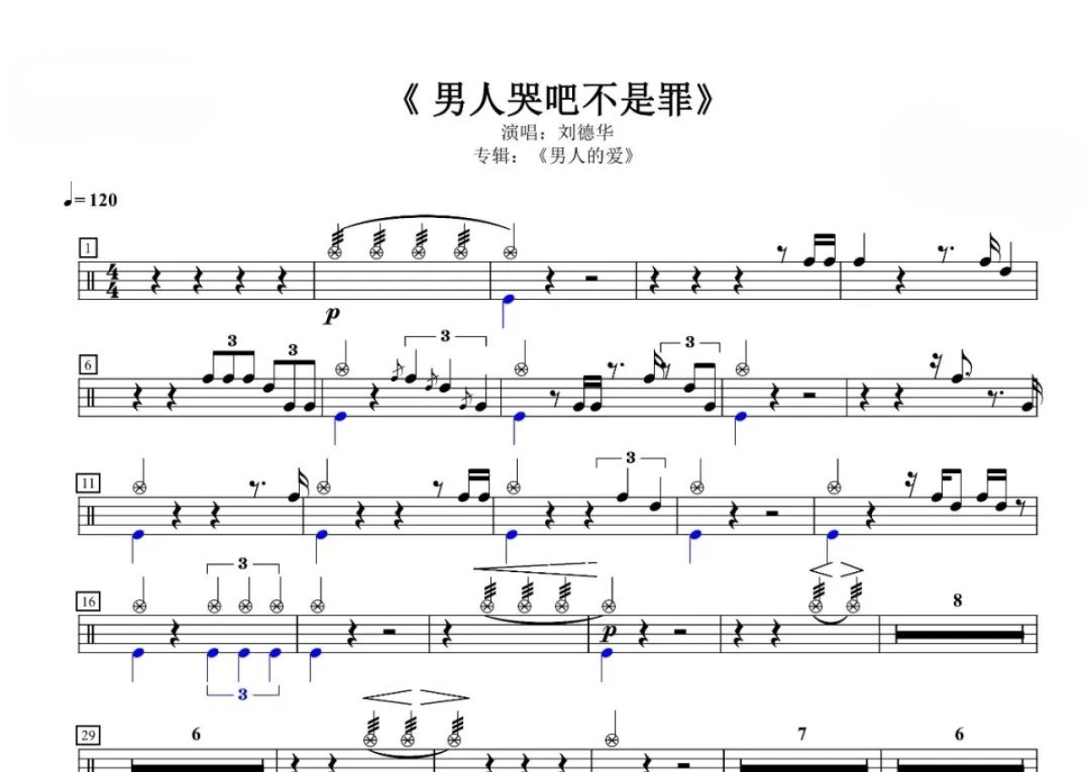 刘德华《男人哭吧不是罪》鼓谱 - 架子鼓谱