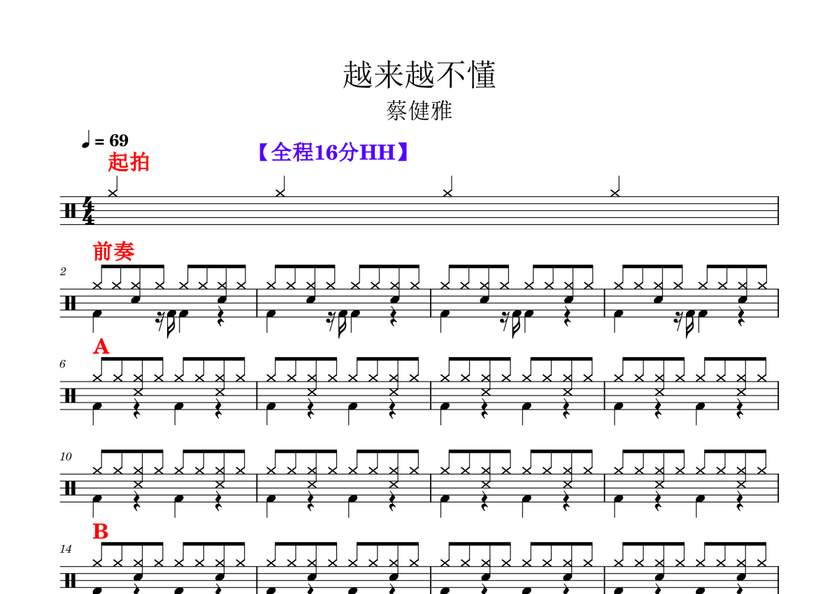 蔡健雅《越来越不懂》鼓谱 - 架子鼓谱