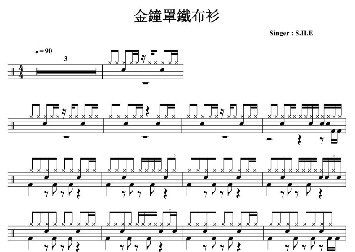 S.H.E《金钟罩铁布衫》鼓谱 - 架子鼓谱