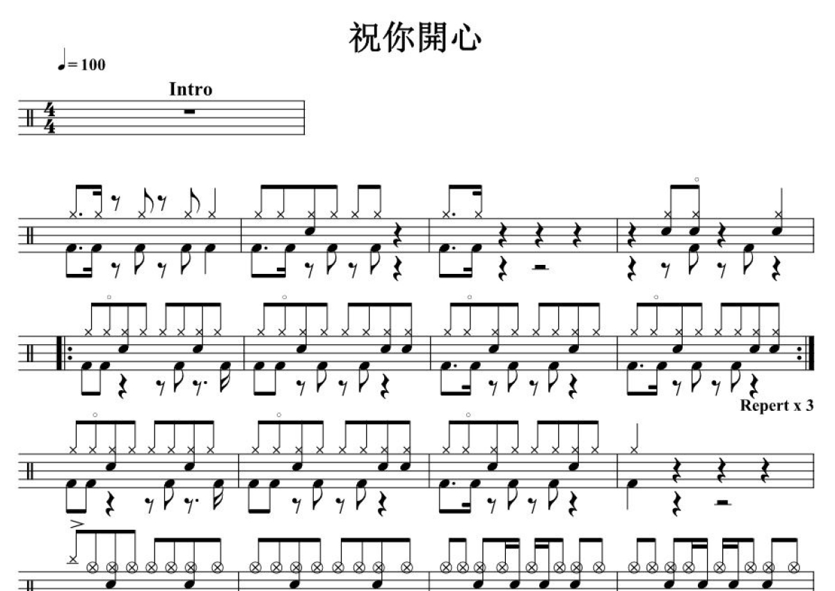 孙燕姿《祝你开心》鼓谱 - 架子鼓谱
