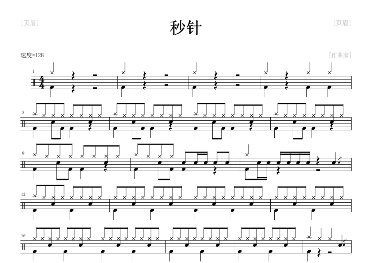 阿梨粤《秒针》鼓谱 - 架子鼓谱