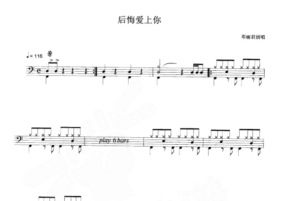 邓丽君《后悔看上你》鼓谱 - 架子鼓谱