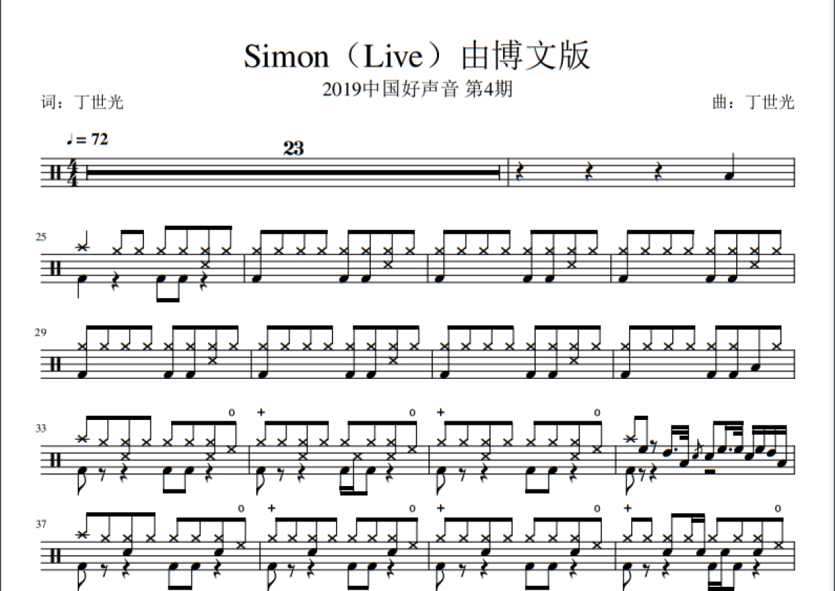 由博文《Simon》鼓谱 - 架子鼓谱