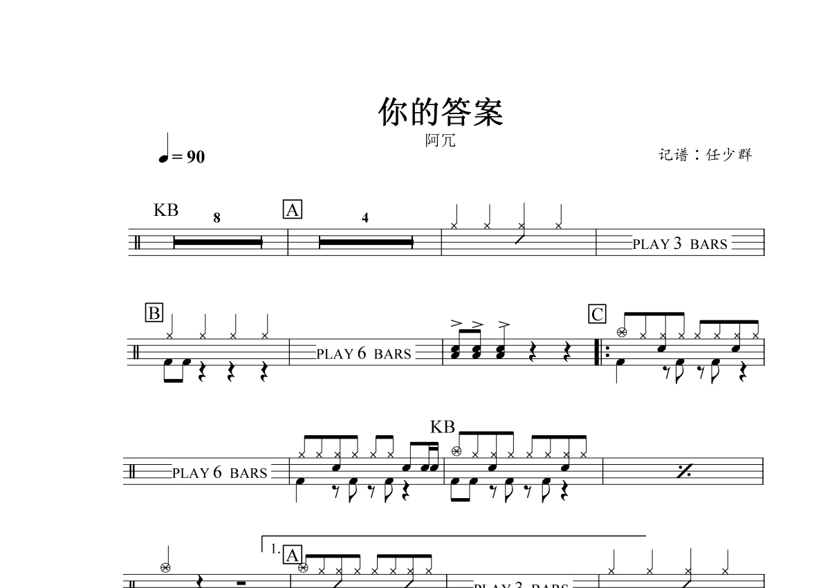 阿冗《你的答案》鼓谱 - 架子鼓谱