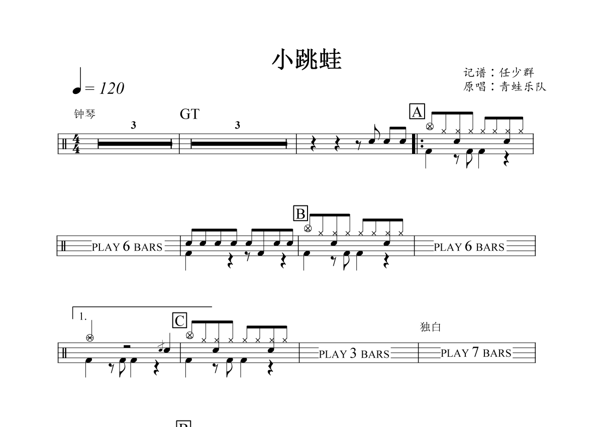 青蛙乐队《小跳蛙》鼓谱 - 架子鼓谱