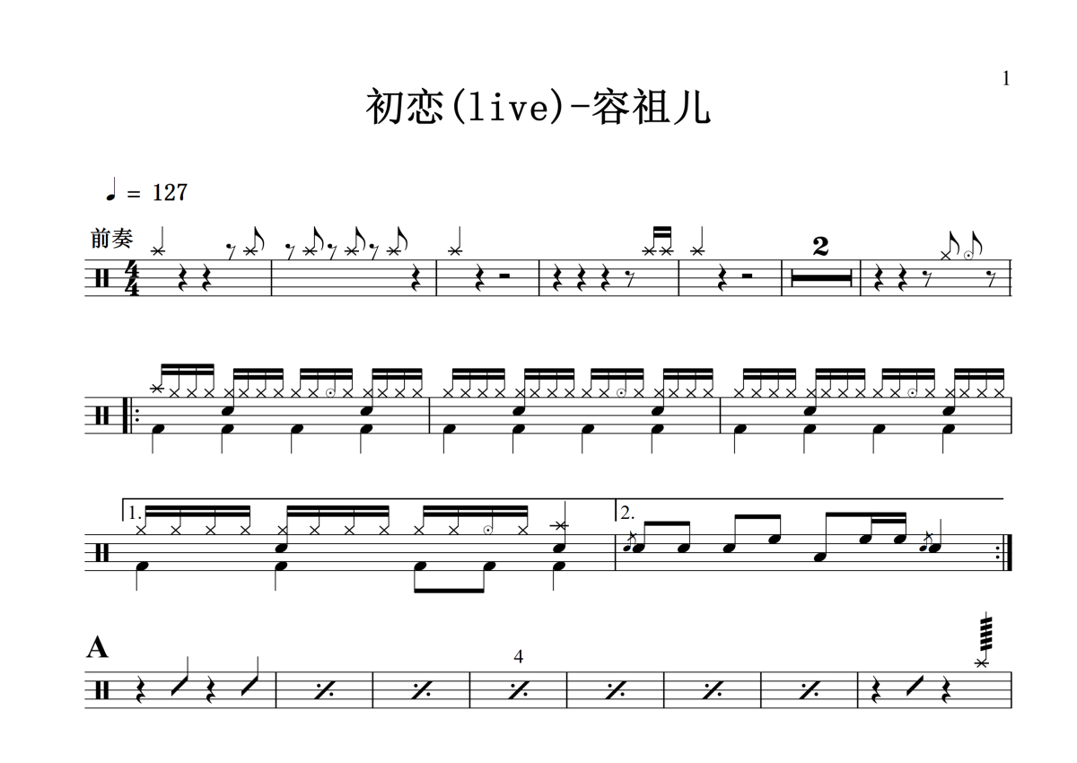 容祖儿《初恋》鼓谱 - 架子鼓谱