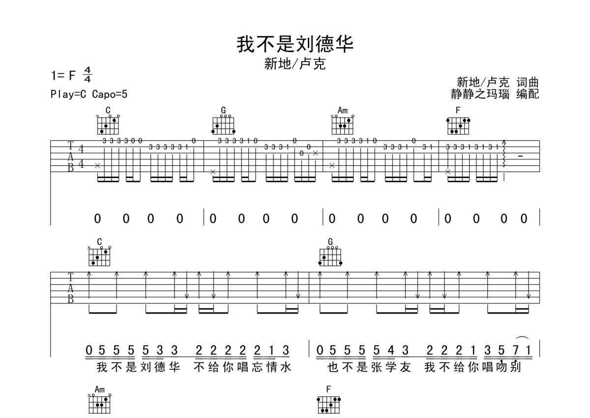 新地《我不是刘德华》吉他谱 - C调弹唱六线谱