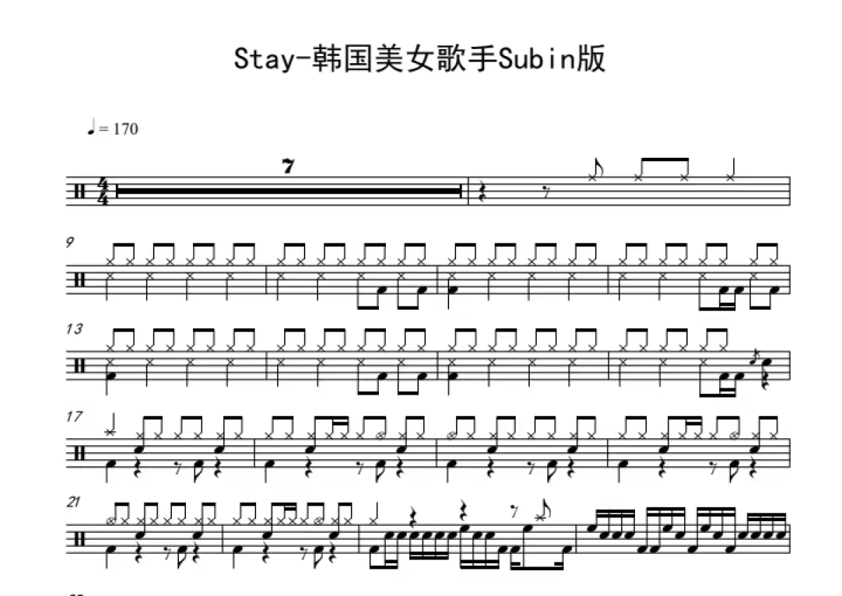 Subin《Stay》鼓谱 - 架子鼓谱