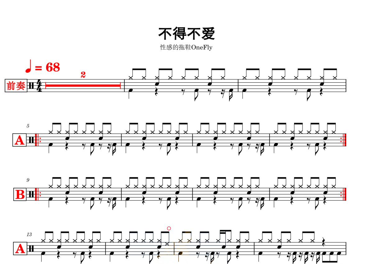 性感的拖鞋OneFly《不得不爱》鼓谱 - 架子鼓谱
