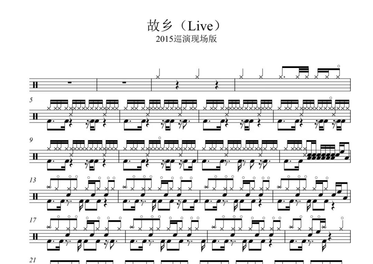 许巍《故乡》鼓谱 - 架子鼓谱 - 2015巡演现场版