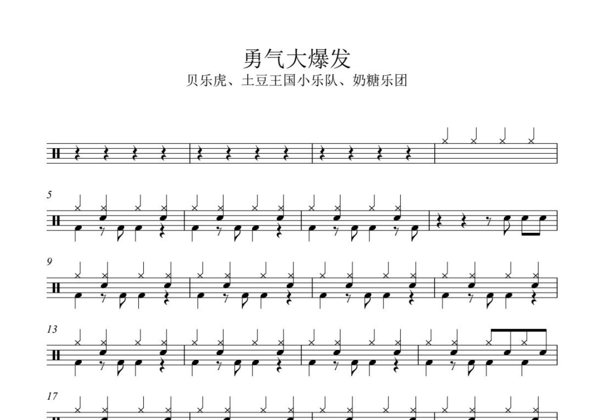 贝乐虎/土豆王国小乐队/奶糖乐团《勇气大爆发》鼓谱 - 架子鼓谱