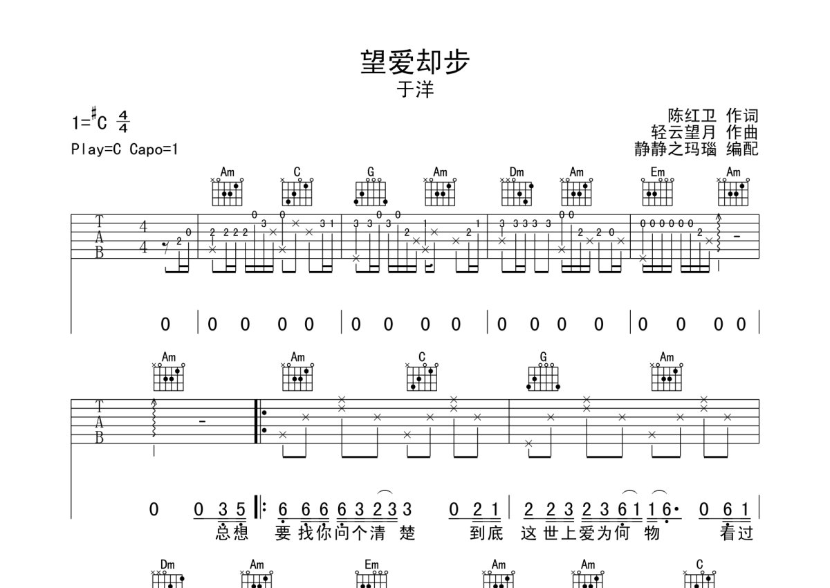 于洋《望爱却步》吉他谱 - C调弹唱六线谱