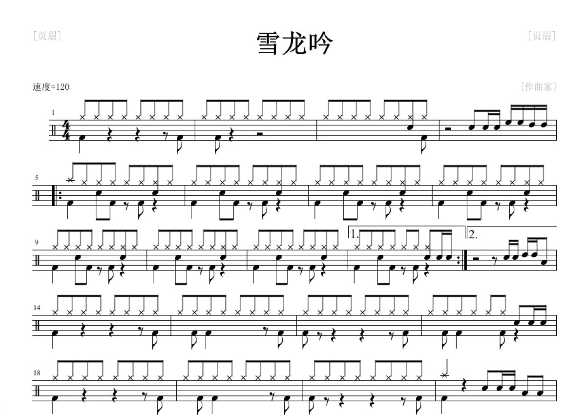 张杰《雪龙吟》鼓谱 - 架子鼓谱