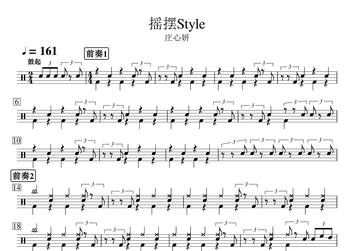 庄心妍《摇摆Style》鼓谱 - 架子鼓谱