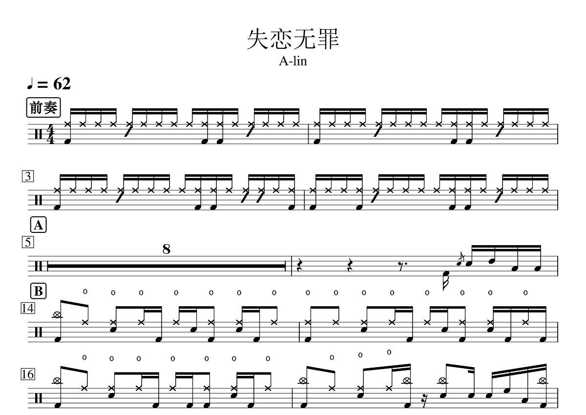 A-Lin《失恋无罪》鼓谱 - 架子鼓谱