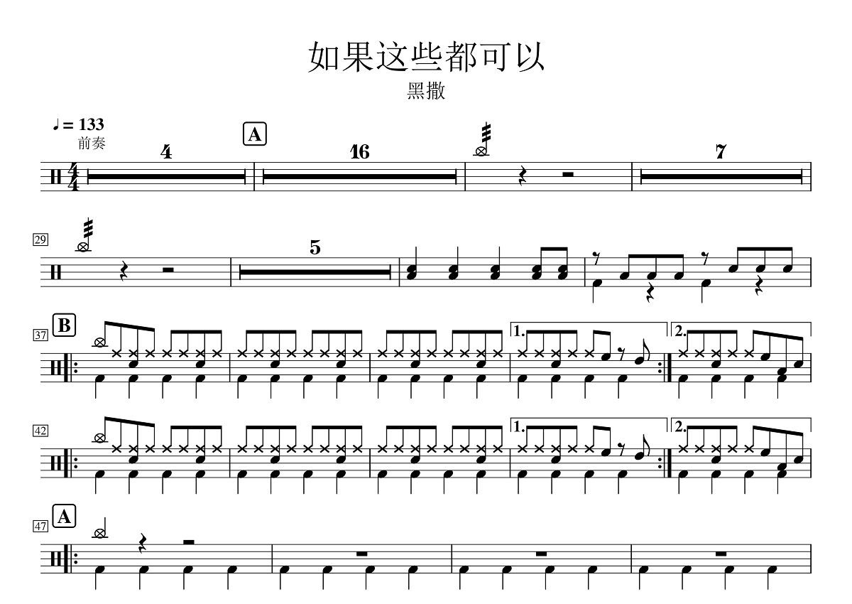黑撒《如果这些都可以》鼓谱 - 架子鼓谱