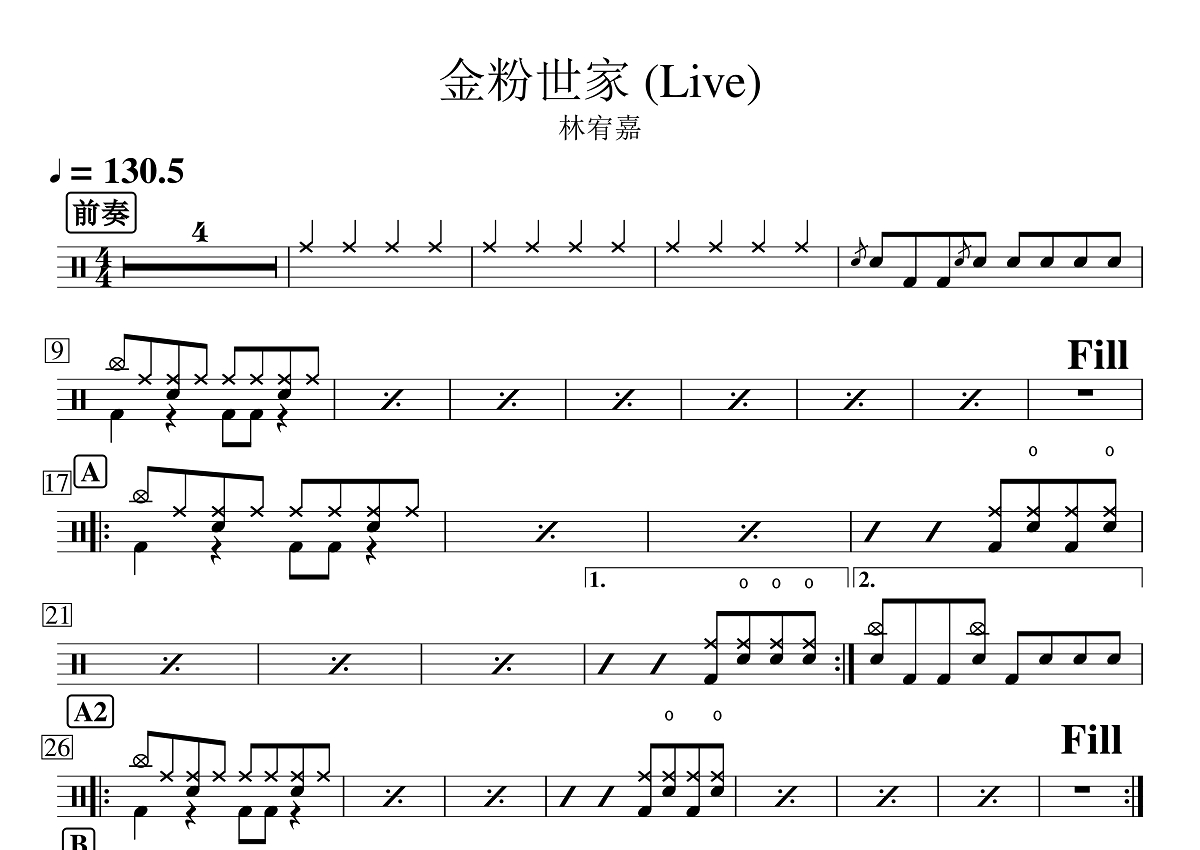 林宥嘉《金粉世家》鼓谱 - 架子鼓谱
