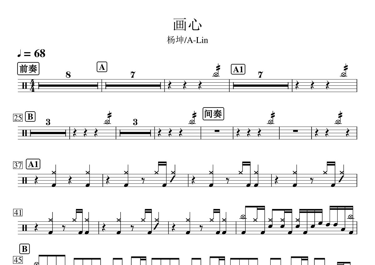杨坤/A-Lin《画心》鼓谱 - 架子鼓谱