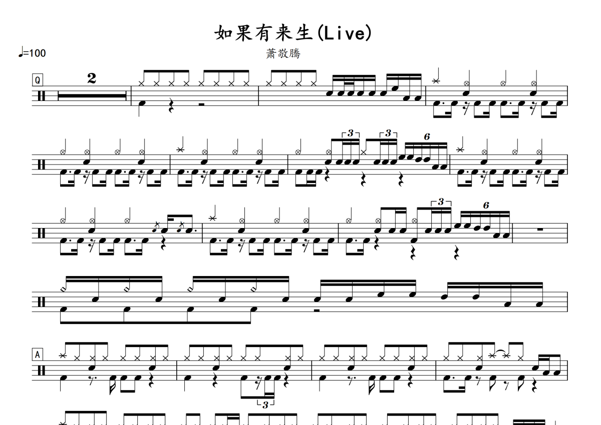 萧敬腾《如果有来生》鼓谱 - 架子鼓谱 - Live