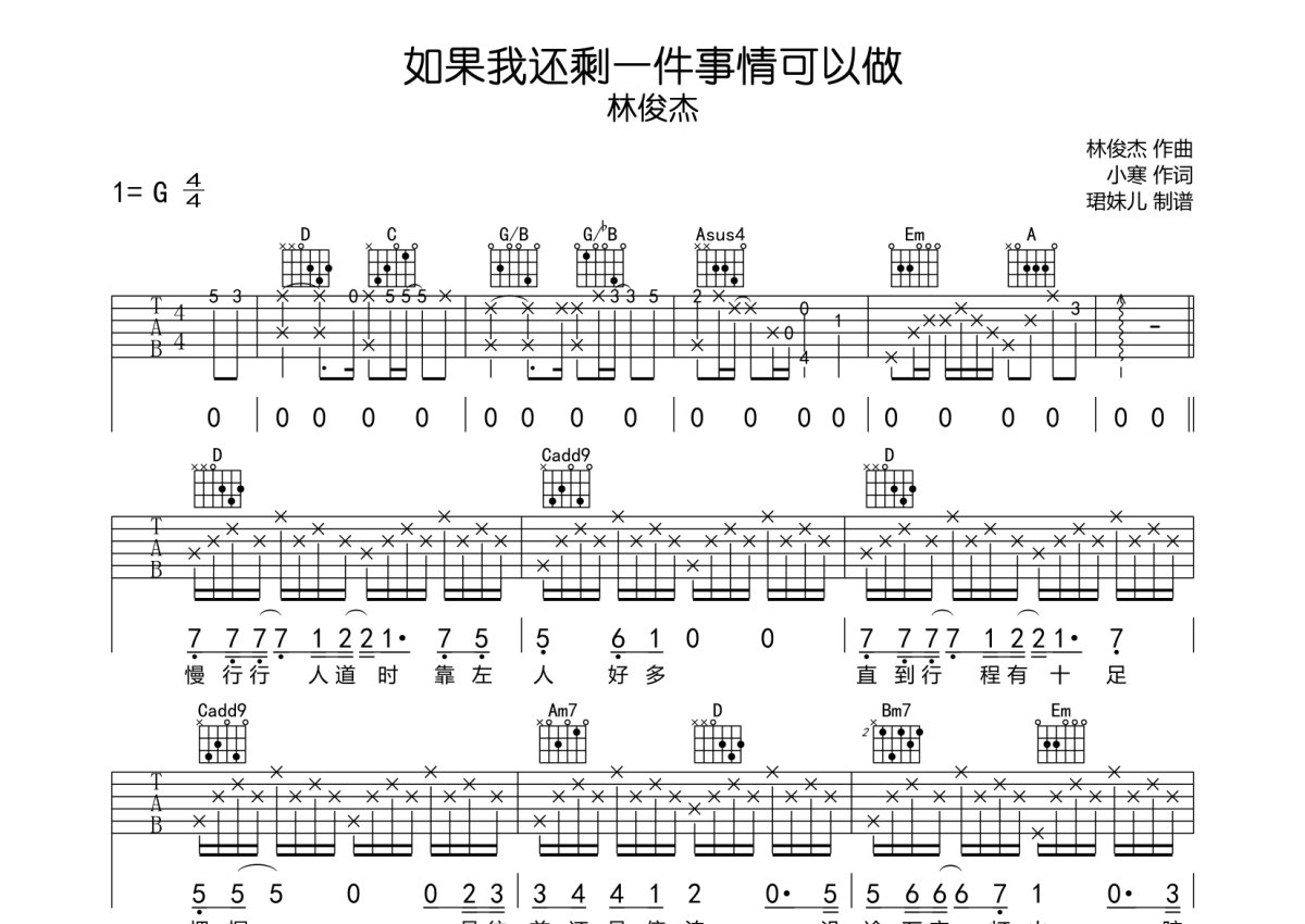 林俊杰《如果我还剩一件事情可以做》吉他谱 - G调弹唱六线谱
