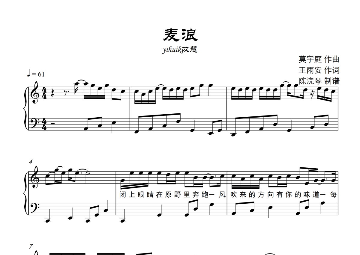 yihuik苡慧《麦浪》钢琴谱