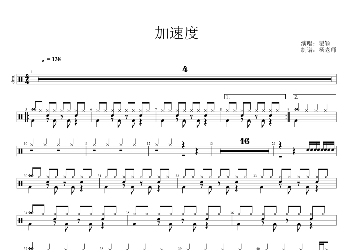 瞿颖《加速度》鼓谱 - 架子鼓谱