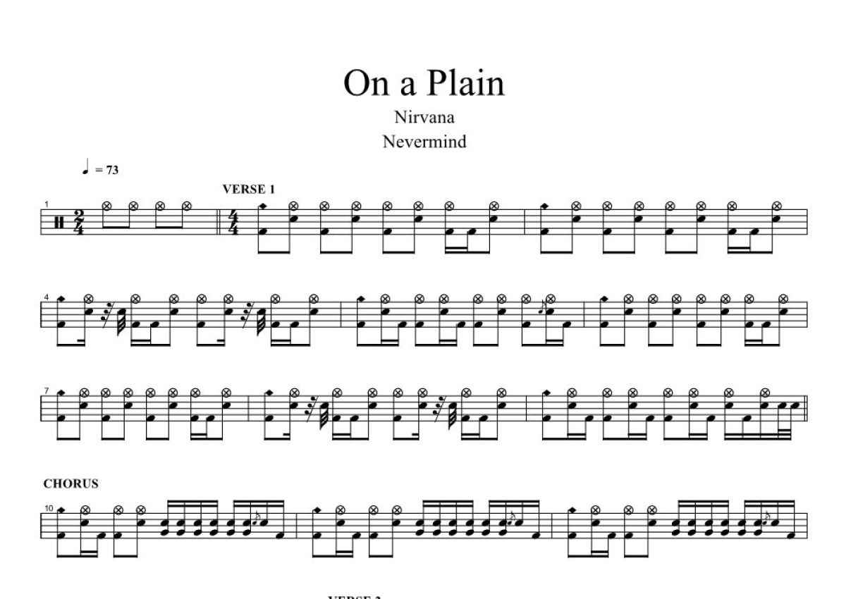 Nirvana《On A Plaink》鼓谱 - 架子鼓谱