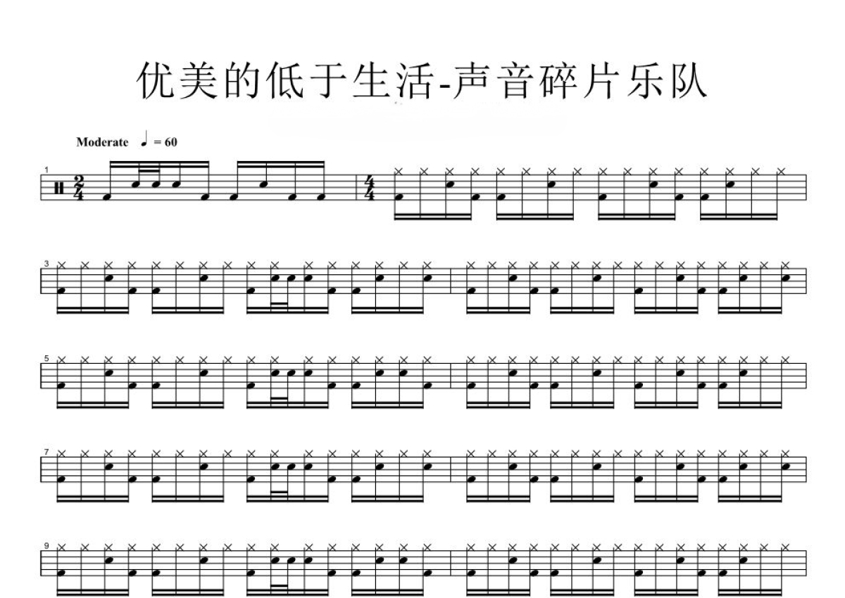 声音碎片乐队《优美的低于生活》鼓谱 - 架子鼓谱