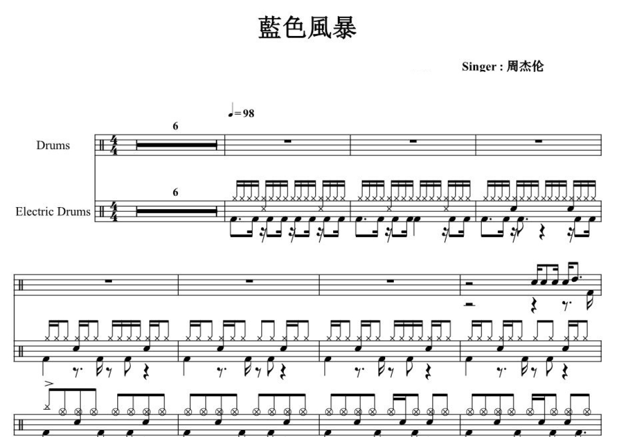 周杰伦《蓝色风暴》鼓谱 - 架子鼓谱