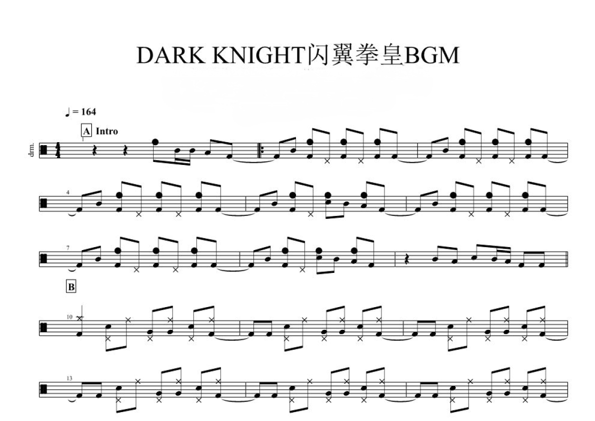 《闪翼拳皇BGM》是超级机器人大战演唱的一首歌曲,这份鼓谱共有两张高清图谱,图谱由 @打鼓谱 编配上传,图谱使用五线谱编配,使用这份闪翼拳皇BGM架子鼓谱,你将能够轻松地敲打出这首超级机器人大战的闪翼拳皇BGM,快来尝试吧。闪翼拳皇BGMDARK KNIGHT超级机器人大战。