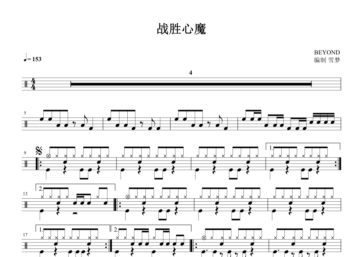BEYOND《战胜心魔》鼓谱 - 架子鼓谱