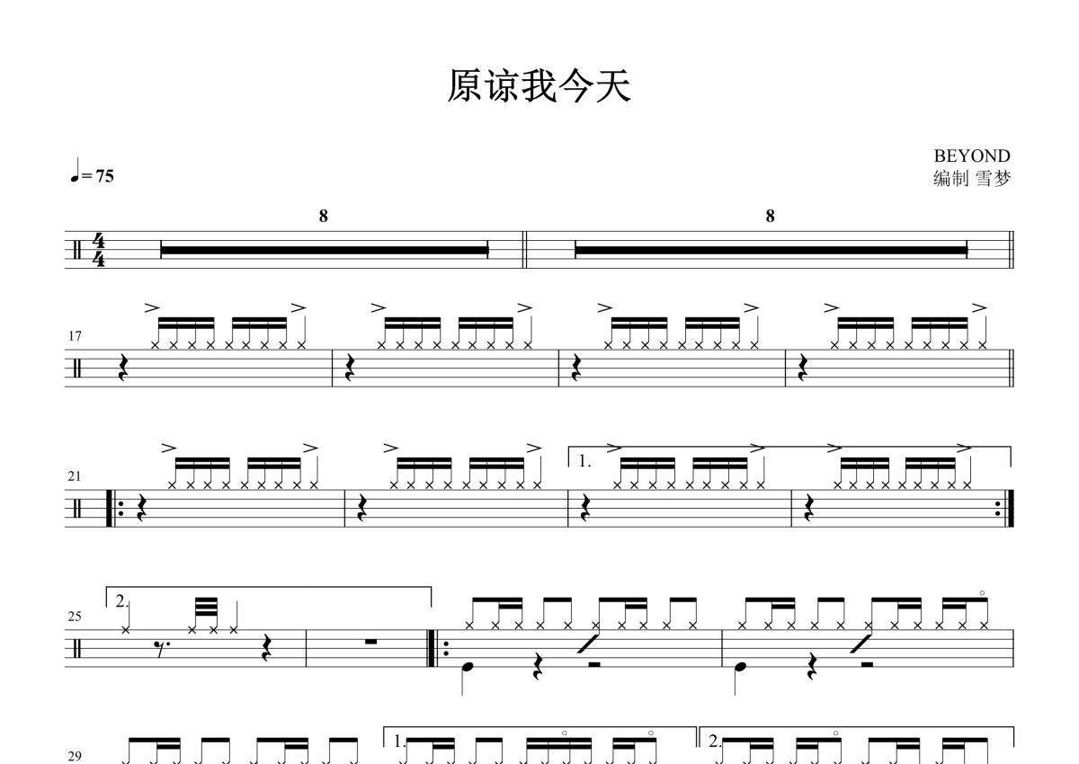 BEYOND《原谅我今天》鼓谱 - 架子鼓谱