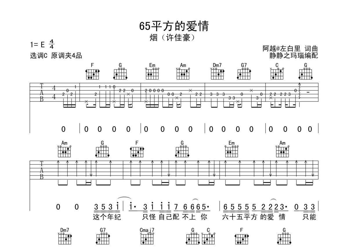 烟(许佳豪)《65平方的爱情》吉他谱 - C调弹唱六线谱