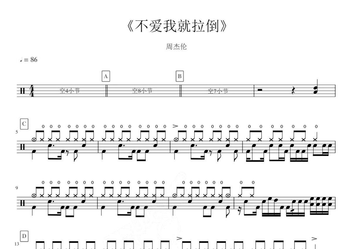 周杰伦《不爱我就拉到》鼓谱 - 架子鼓谱