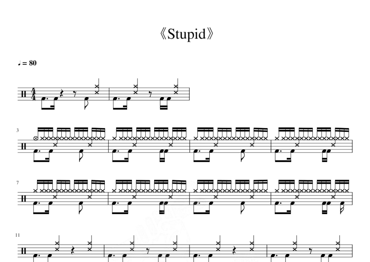 《Stupid》是Milkk演唱的一首歌曲,这份鼓谱共有三张高清图谱,图谱由 @打鼓谱 编配上传,图谱使用五线谱编配,使用这份Stupid架子鼓谱,你将能够轻松地敲打出这首Milkk的Stupid,快来尝试吧。